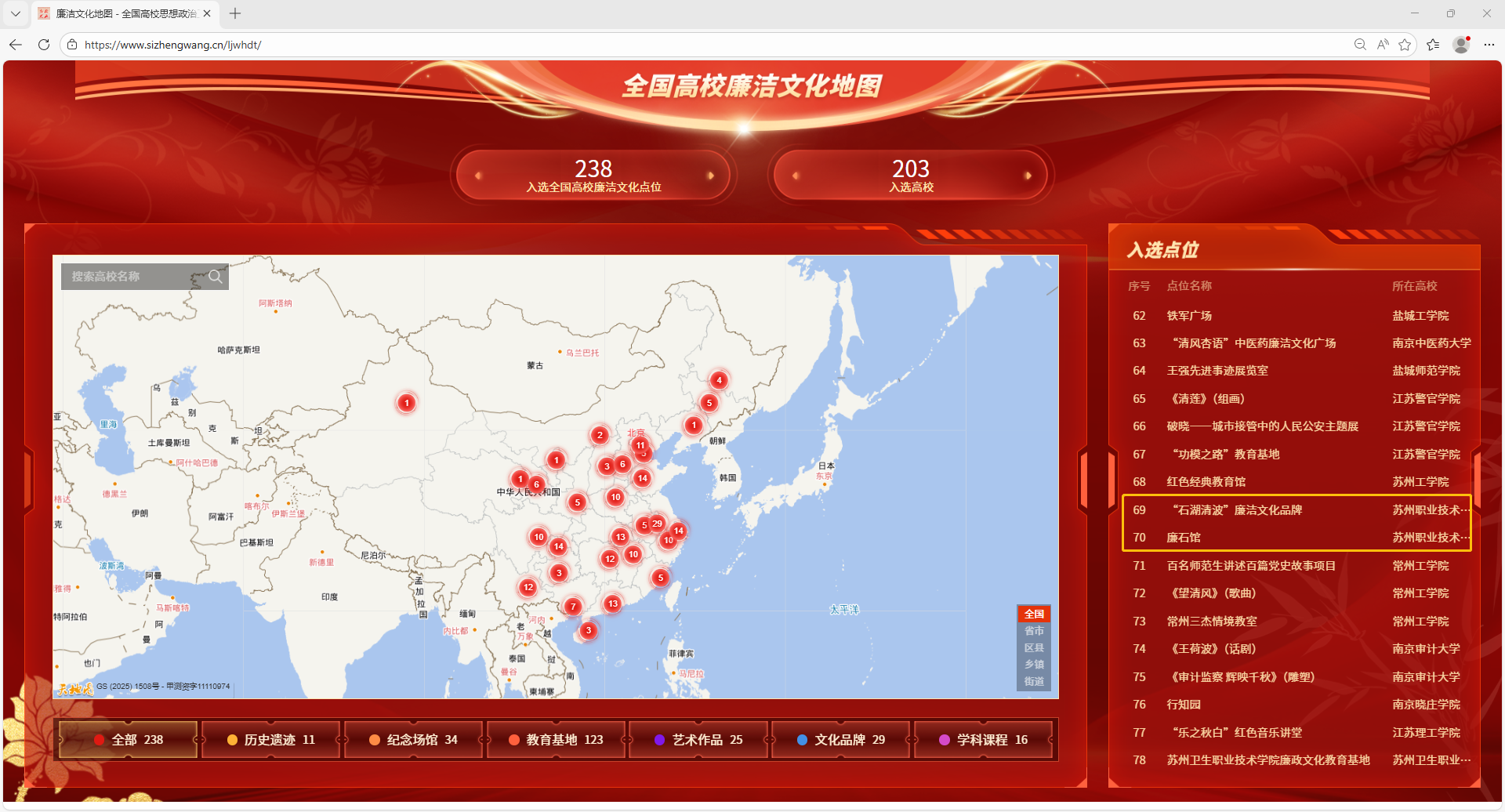 我校“石湖清波”廉洁文化品牌和廉石馆同时入选“全国高校廉洁文化地图”
