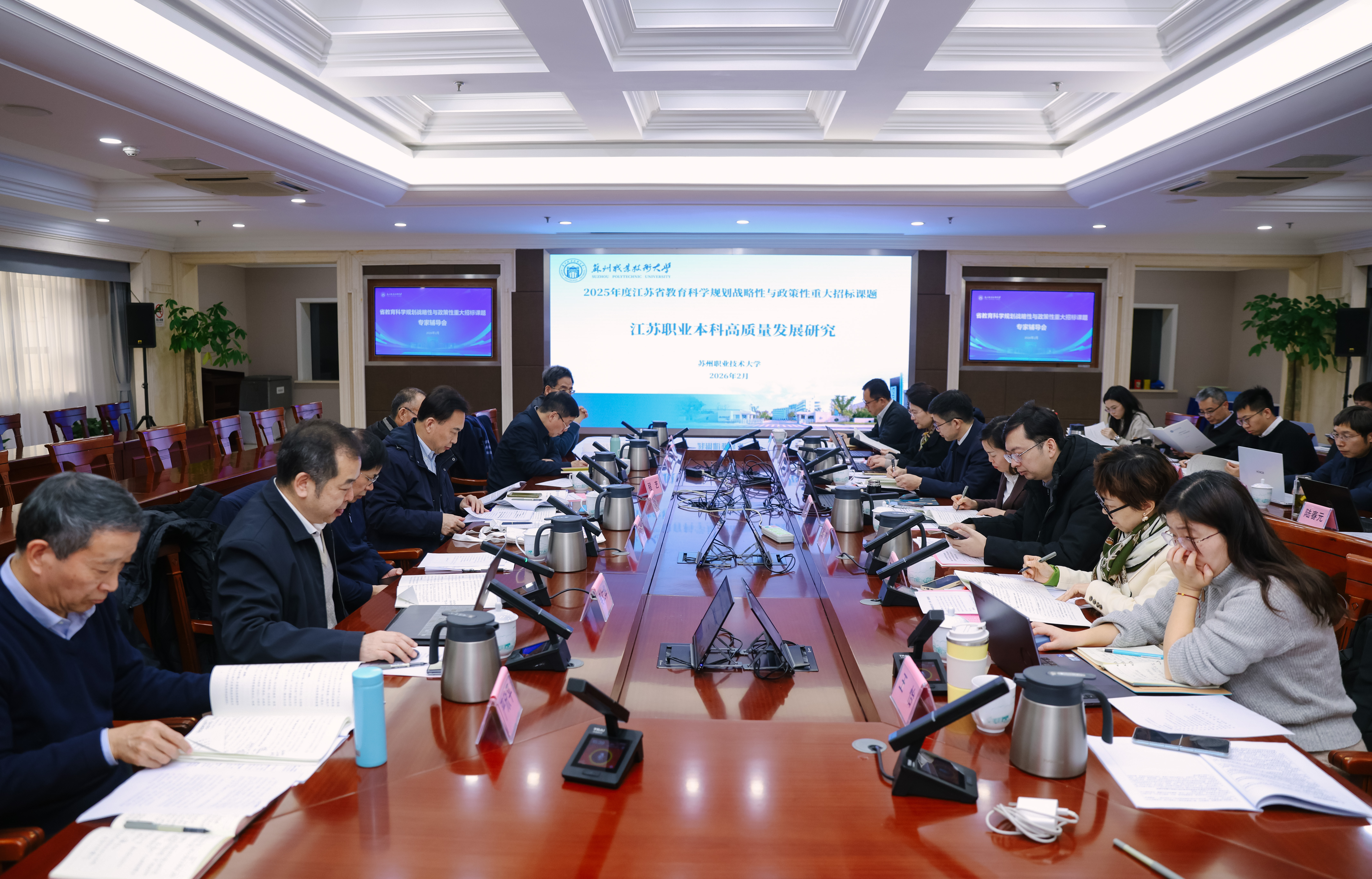 2月2日下午,由校党委书记温贻芳主持的江苏省教育科学规划战略性与政策性重大招标课题“江苏职业本科高质量发展研究”专家辅导会在我校召开。
