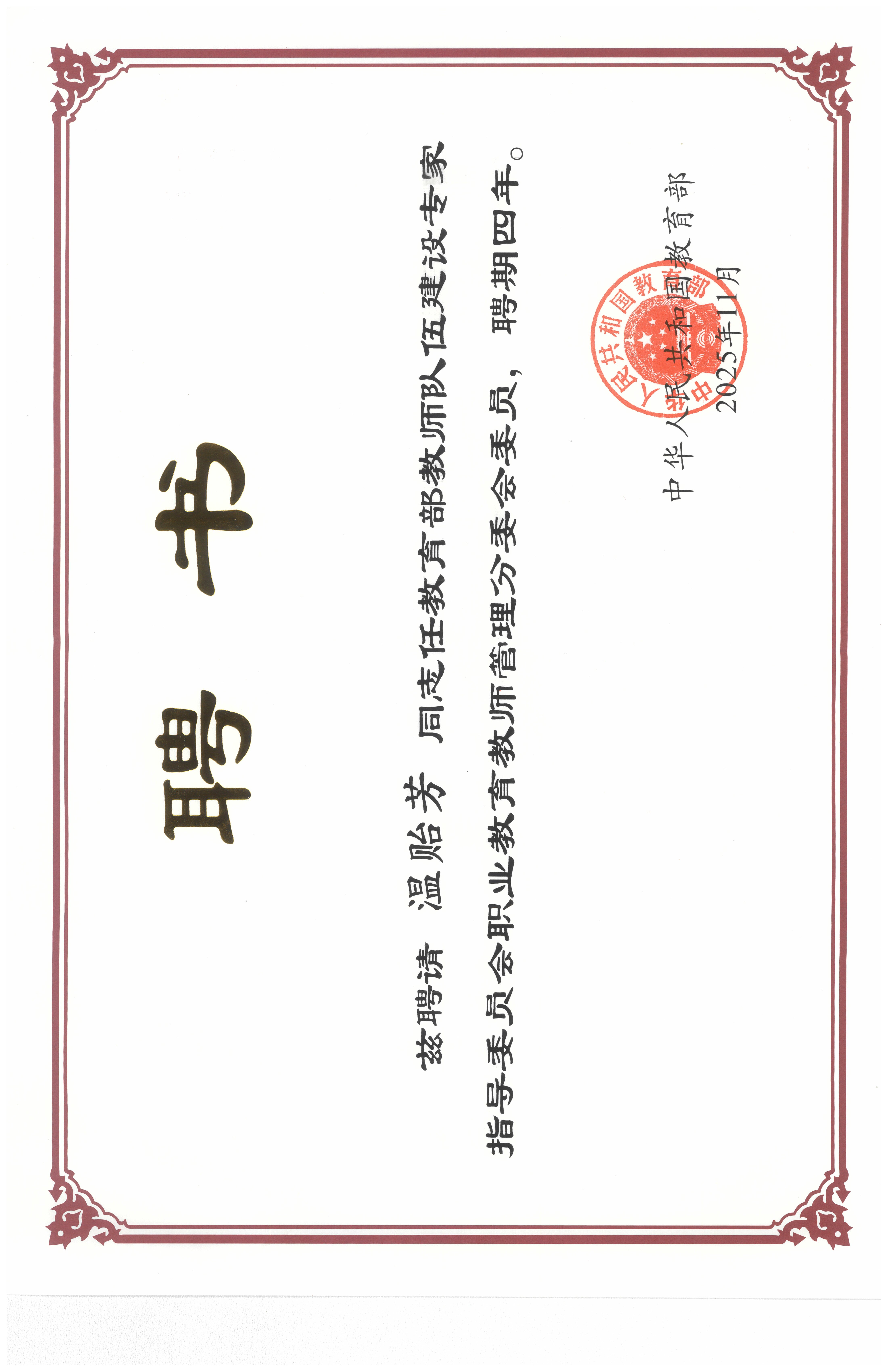此次温贻芳书记获聘为分委会委员,充分体现了教育部对我校教师队伍建设工作的扎实基础与广泛影响力的高度认可。学校将以此为契机,紧紧围绕国家职业教育发展战略需求,立足基层实践探索,持续深化教师队伍建设改革。未来,我校将在温贻芳的带领下进一步发挥委员单位作用,积极建言献策,争当教师队伍高质量发展的“智囊团队”、协同共建的“桥梁纽带”以及系统性改革的“探路先锋”,为培育高素质、专业化的“双师型”教师队伍贡献智慧与力量。