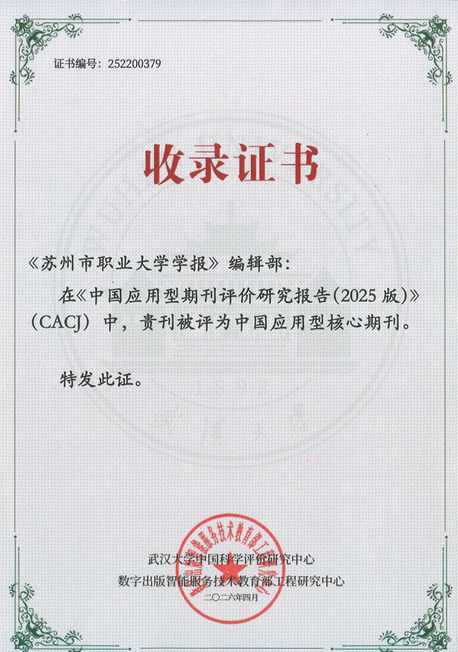 4月10日,《中国应用型期刊评价研究报告(2025版)》(以下简称2025版《报告》)正式发布,我校《苏州市职业大学学报》再次入选CACJ中国应用型核心期刊(自科社科综合应用类)。